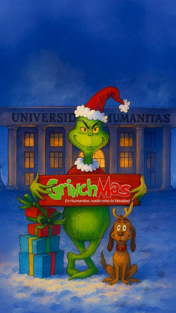 No dejes que este verde y burlón personaje se salga con la suya. En Universidad Humanitas, el aprendizaje y crecimiento van más allá de las aulas y con este evento navideño queremos comprobarlo. Qué mejor manera de compartir que una serie de actividades y amenidades diseñadas para fortalecer los lazos entre compañeros y docentes. Así, podrás relajarte, divertirte y juntos demostrarle al Grinch que el espíritu navideño de nuestra comunidad está a prueba de todo. ¡Ya es momento de empezar a coleccionar los mejores recuerdos de esta época!